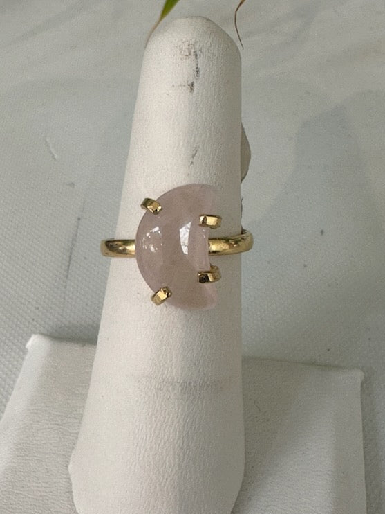 Rose Quartz Moon Simple Band Ring | Love & Intuition Jewelry