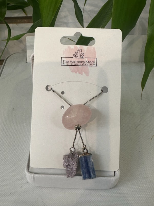 Tranquility Three Piece Necklace- Rose Quartz, Lepidolite, & Kyanite