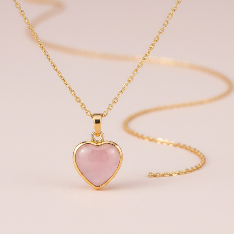 Rose Quartz Tiny Heart Necklace with Gold Edge | Love & Heart Healing Jewelry